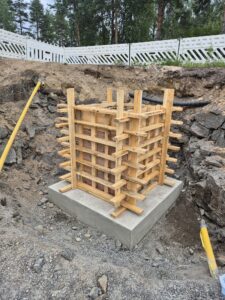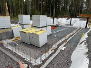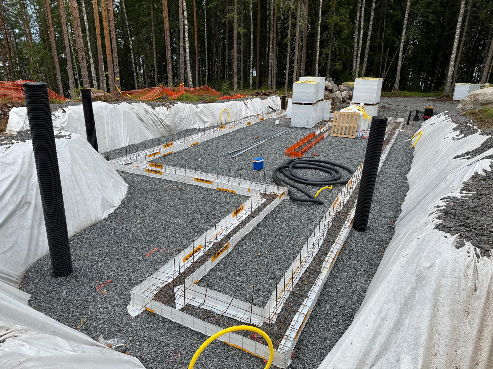 Useita omakotitalo- ja kesähuvilaperustuksia